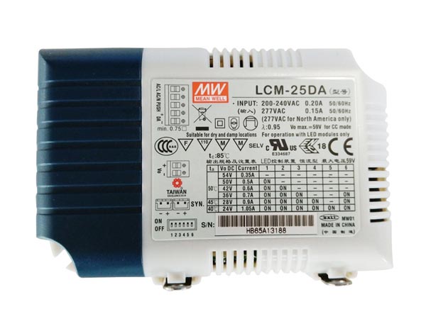 LCM-25DA - MULTIPLE-STAGE OUTPUT CURRENT LED POWER SUPPLY - 25 W - SELECTABLE OUTPUT CURRENT WITH PFC