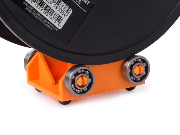 The orange spoolholders, as shown in the pictures, are not included but you can 3D print them!