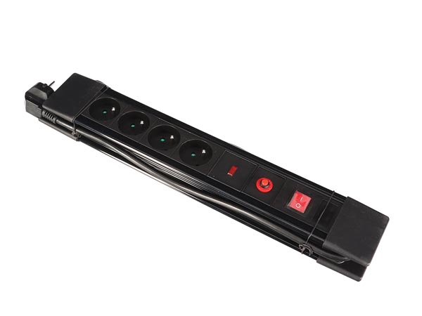 4-VOUDIGE STEKKERDOOS - MET OVERSPANNINGS-EN BLIKSEMINSLAGBEVEILIGING - RANDAARDE
