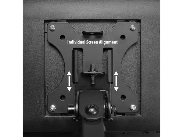 systeem voor het gemakkelijk monteren van de beeldschermen, daarnaast ook eenvoudig in hoogte verstelbaar zonder gereedschap door het handige schroefsysteem