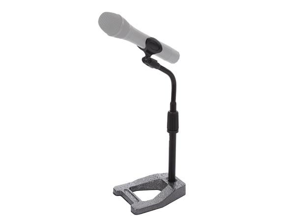 Tafelstatief voor microfoon met zwanenhals. Met zware basis voor een goede stabiliteit, een instelbare zwanenhals en instelbare hoogte. Geleverd met microfoonklem.