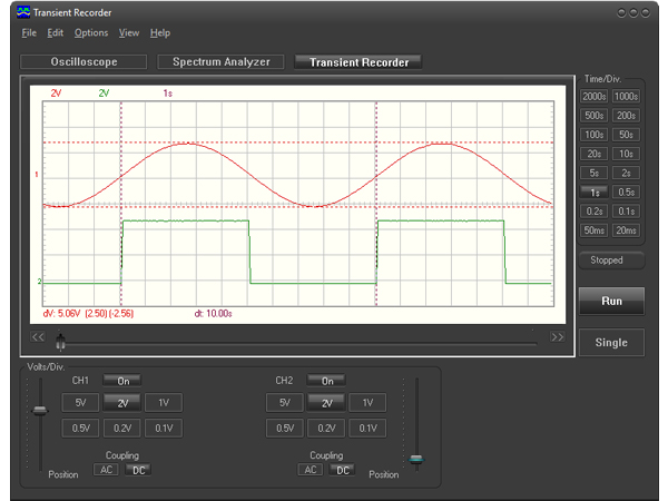 Deze kleine en makkelijk te gebruiken oscilloscoop heeft alle kenmerken van zijn grote broers en heeft een bandbreedte van 500 kHz (±3 dB)!