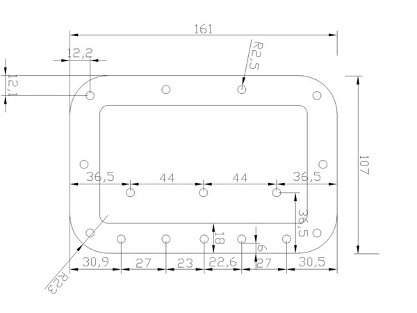 VDAC08 - HANDVAT VOOR LUIDSPREKER, MET VEER, ZWART METAAL, 161 x 107mm