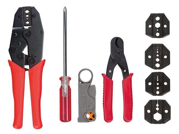 COMPLETE KIT MET COAX KRIMPTANG EN BEKKENS