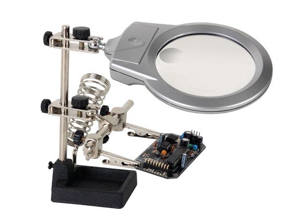 DERDE HAND MET VERGROOTGLAS, LED-LAMP EN SOLDEERBOUTHOUDER