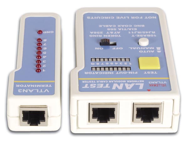 VTLAN3 - LAN-TESTER VOOR RJ45 (8P8C), RJ12 (6P6C), RJ11 (6P2C), RJ10 (4P4C) & BNC