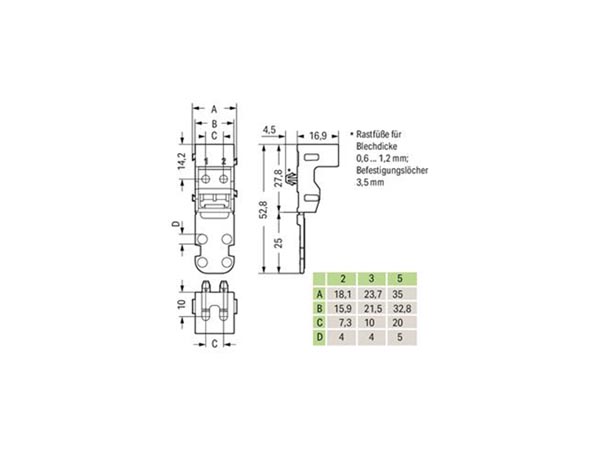 BEVESTIGINGSADAPTER - VOOR 5-DRAADSKLEMMEN - SERIE 221 - 4 mm² - MET KLIKVOETJE VOOR HORIZONTALE MONTAGE - WIT